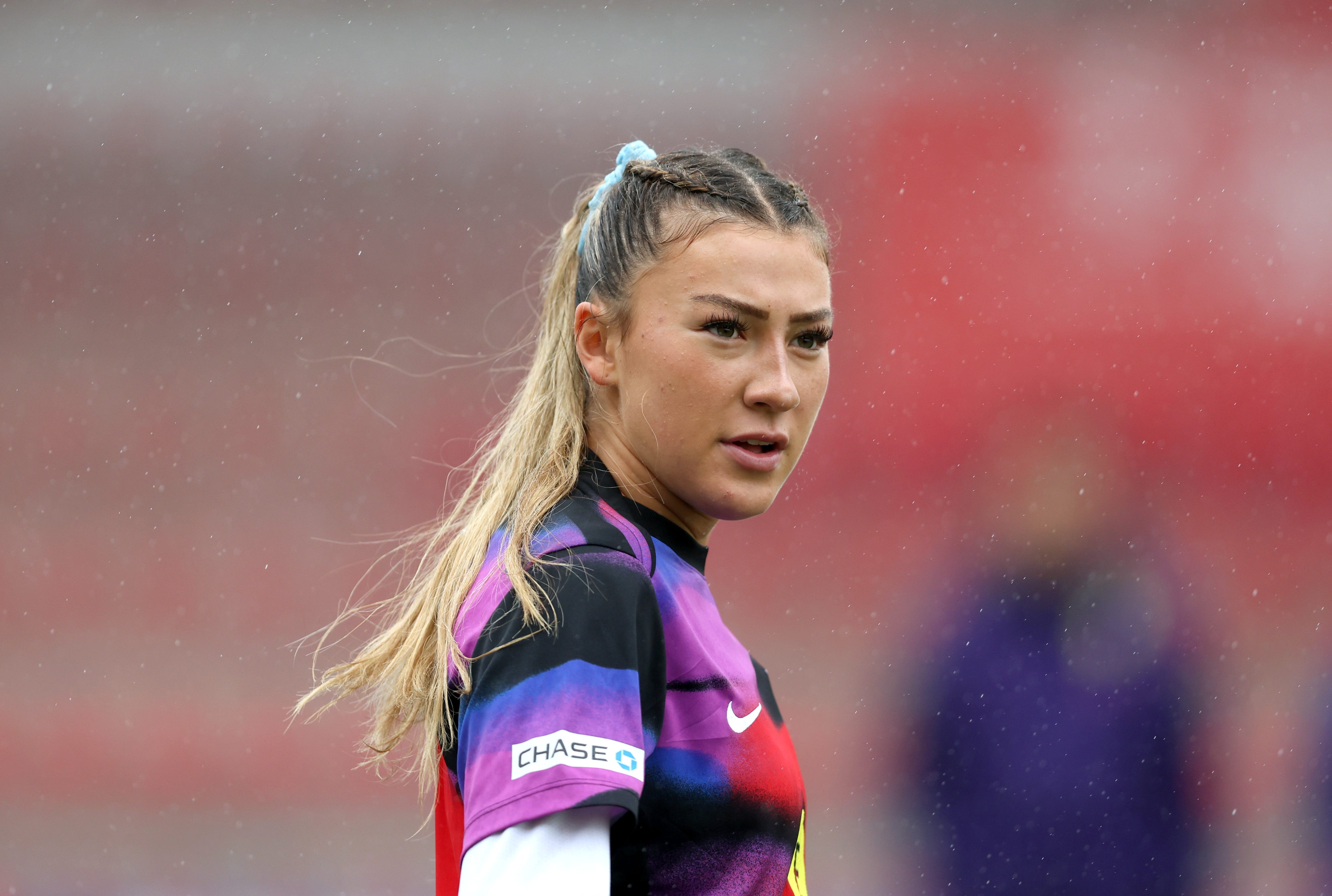 The teenager is full of confidence but also calmness: for someone so young there are few nerves, even when talking about braiding her teammates’ hair and filming TikToks in camp.