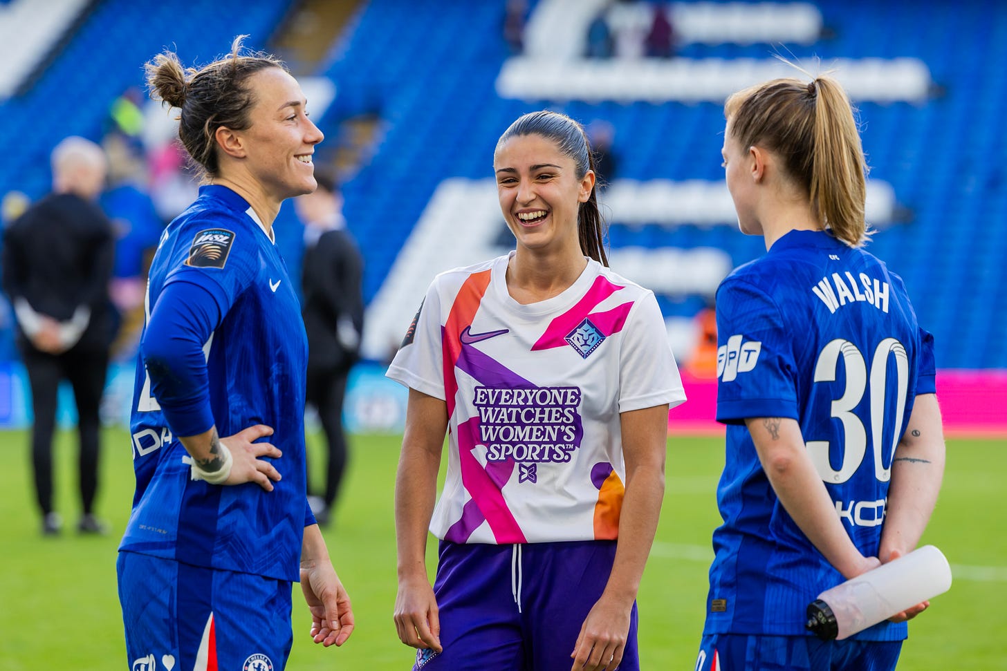 “At Barcelona, the infrastructure was amazing, but that obviously wasn’t the same for other clubs in Liga F. When we went to other stadiums, the field was horrible, or they wouldn’t have a doctor or physios, or that week they had to train on astroturf every day – things that made no sense. I don’t think those things would happen here.”