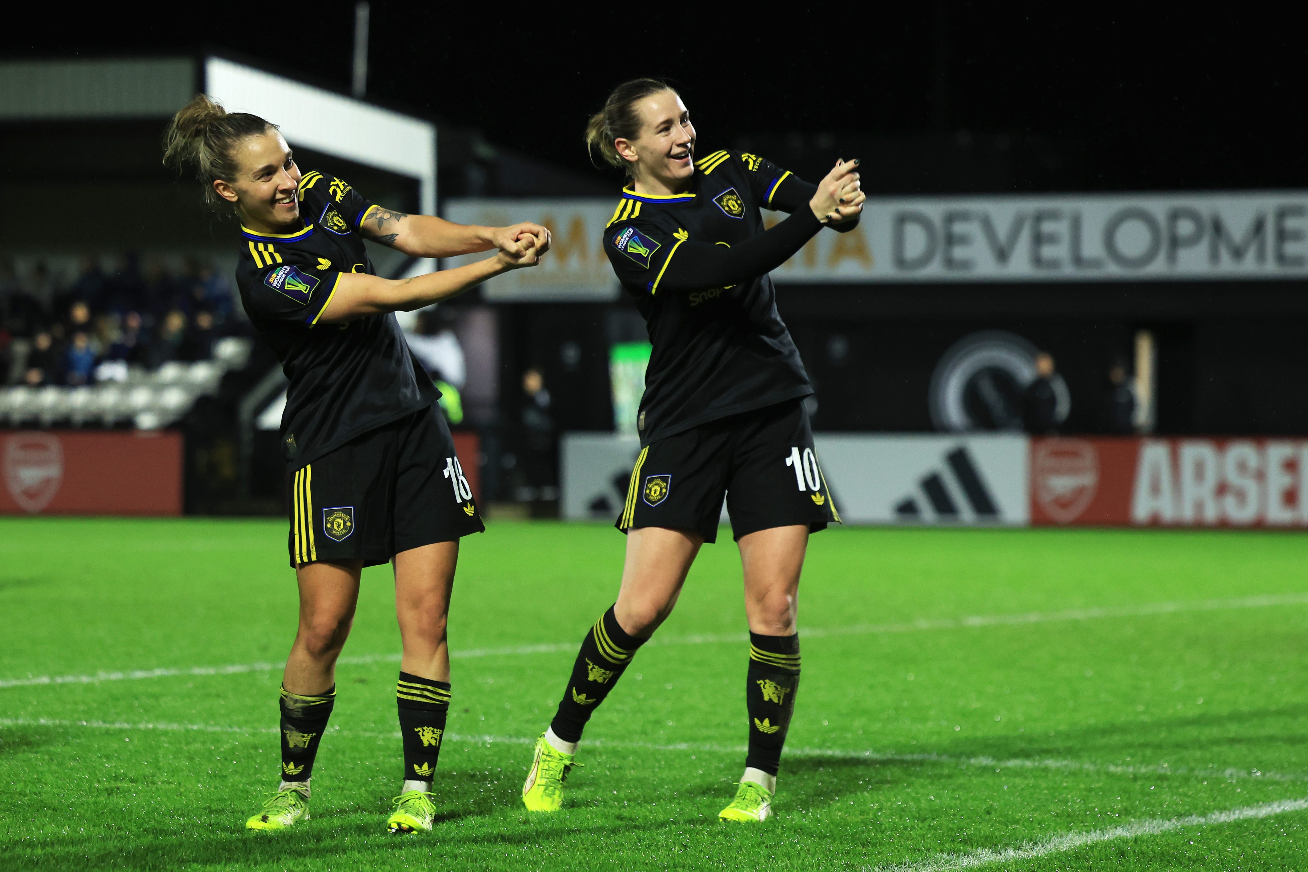 The semi-final against Arsenal presented an entirely different type of test. United were forced into a more defensive and disciplined performance against a side that controlled large portions of the game territorially. The decisive moment came just before half-time, when Elisabeth Terland struck from the edge of the box with a precise right-footed finish to give United the lead.