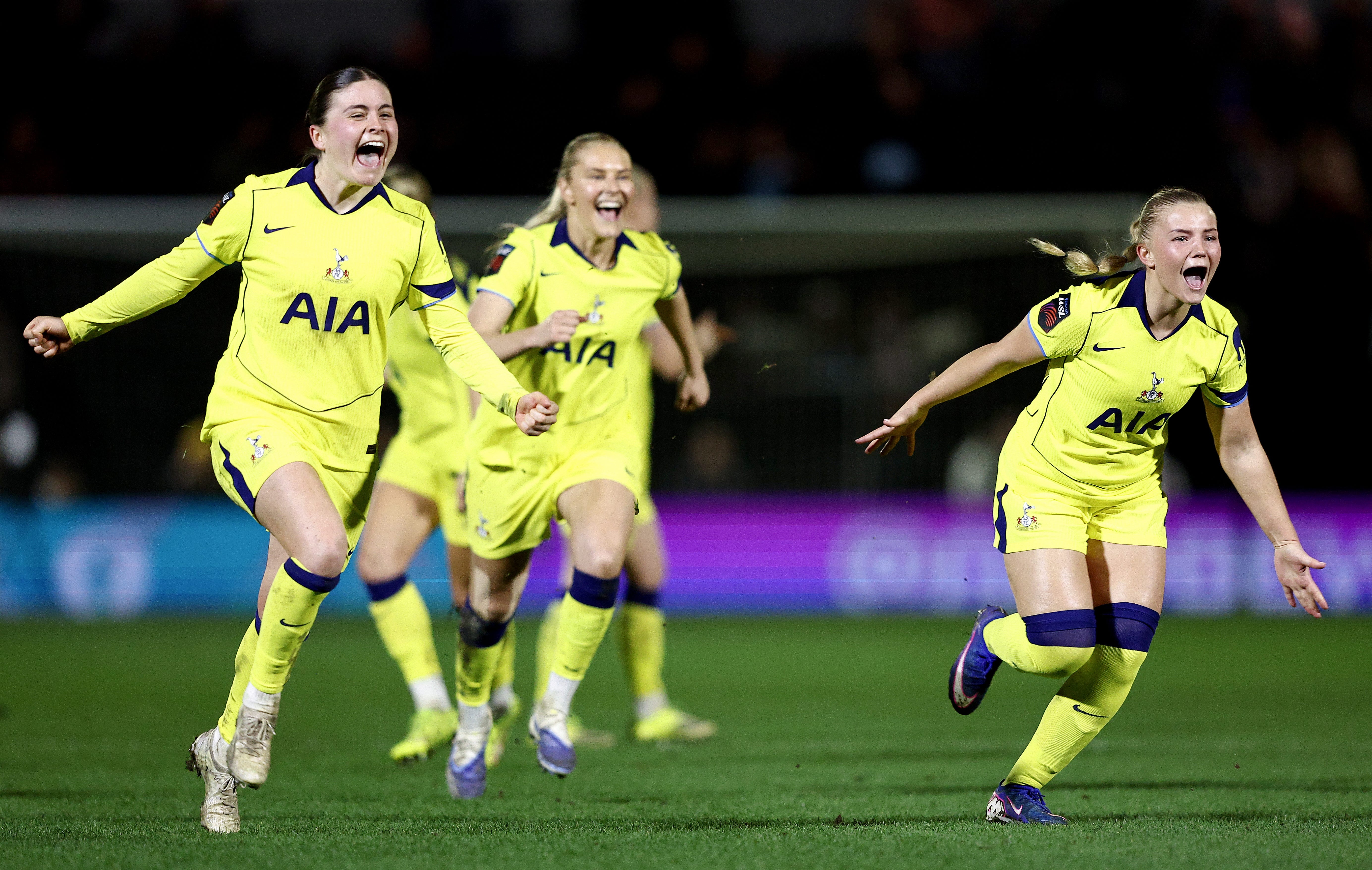 In the final minute of normal time, Spurs were awarded a penalty for a handball against Teyah Goldie and Bethany England sent the tie into extra time and then a penalty shootout. It was ultimately 19-year-old Wassa Sangare’s shot that was saved by Lize Kop to give Spurs the 9-8 win on penalties.